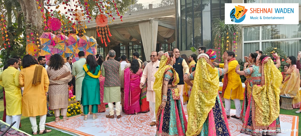 Make your sangeet night truly unforgettable with a vibrant Rajasthani dance group. From graceful Ghoomar to energetic Kalbelia and royal Chari performances, experience cultural elegance and grand entertainment with Shehnai Waden.